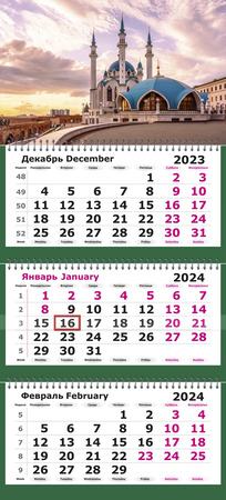 Календарь 2025г настен.квартал.трехблоч.(Полином) (305675) Казань Мечеть Кул Шариф (на спирали)