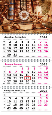 Календарь 2025г настен.квартал.трехблоч.(Полином) (305697) Классическая Роскошь (на спирали,картон нева,4+0)