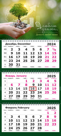 Календарь 2025г настен.квартал.трехблоч.(Полином) (305697) На рост доходов (на спирали)