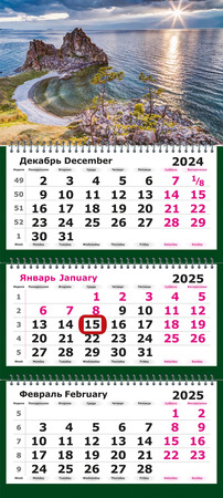 Календарь 2025г настен.квартал.трехблоч.(Полином) (305697) Пейзаж Байкал (на спирали,магн.курсор)