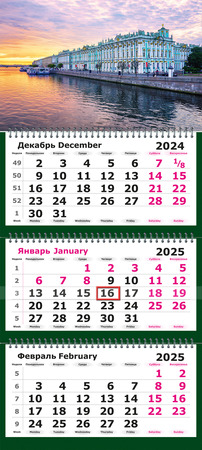 Календарь 2025г настен.квартал.трехблоч.(Полином) (305697) Питер Зимний Дворец (на спирали)