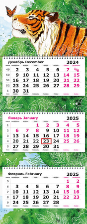 Календарь 2025г настен.квартал.трехблоч.(Полином) (305780) Тигр с бабочкой (на спирали)