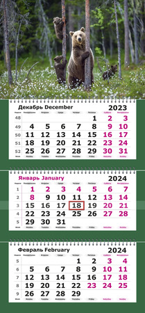 Календарь 2025г настен.квартал.трехблоч.(Полином) (330705) Медвежья семейка (на спирали)