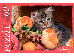 Puz 60д. РыжийКот Котенок в цветах (П60-0431)